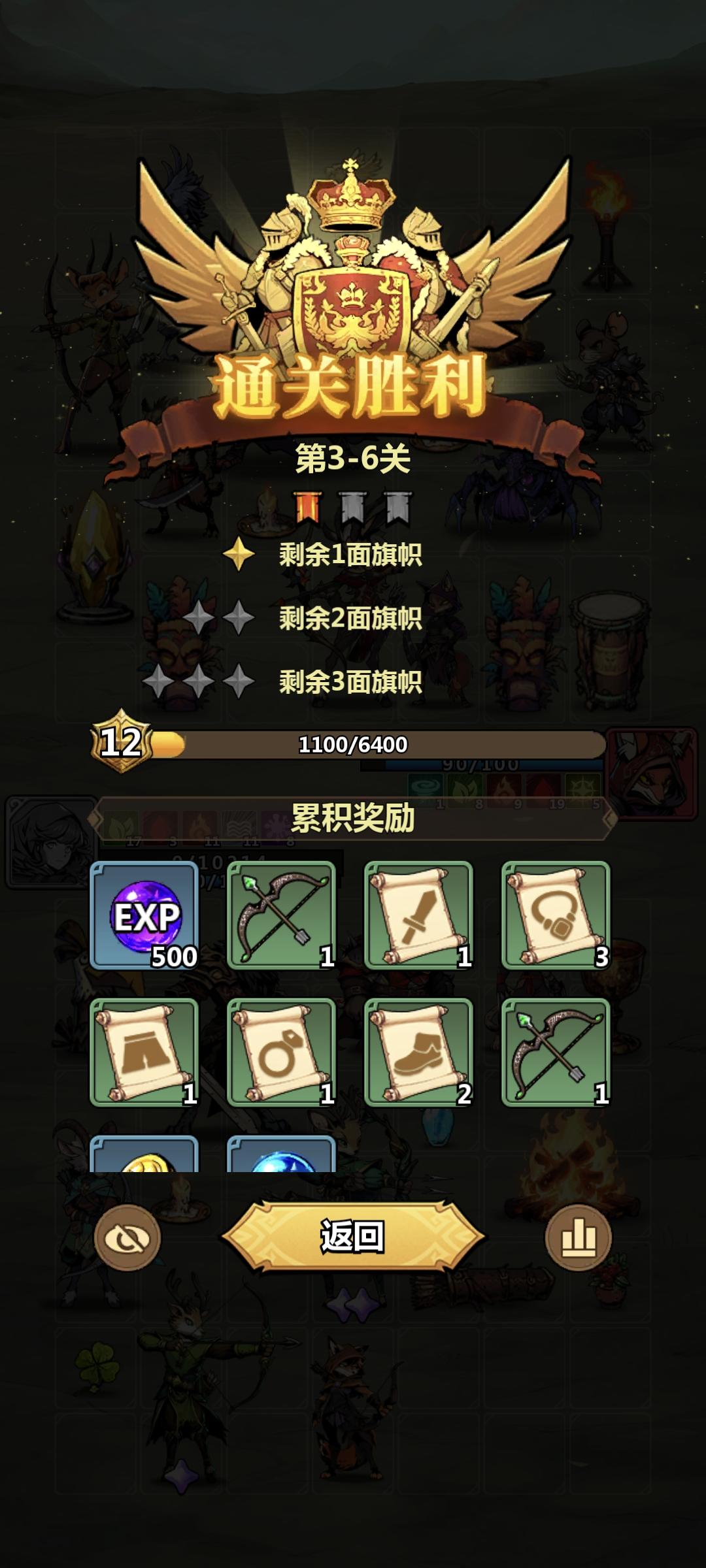 不多说,二星或者一星完成直接就是扫荡。看刚刚说的,太差的话就扫荡到11级再打,因为#我们虽然是到了10级开放了20装等,但是并没有强化满,还有英雄等级也是。不过即使是10级全3星推到了3-6,我们也不准备对3-6动手。而是歇一歇通过扫荡把等级升到12级半后再打。
