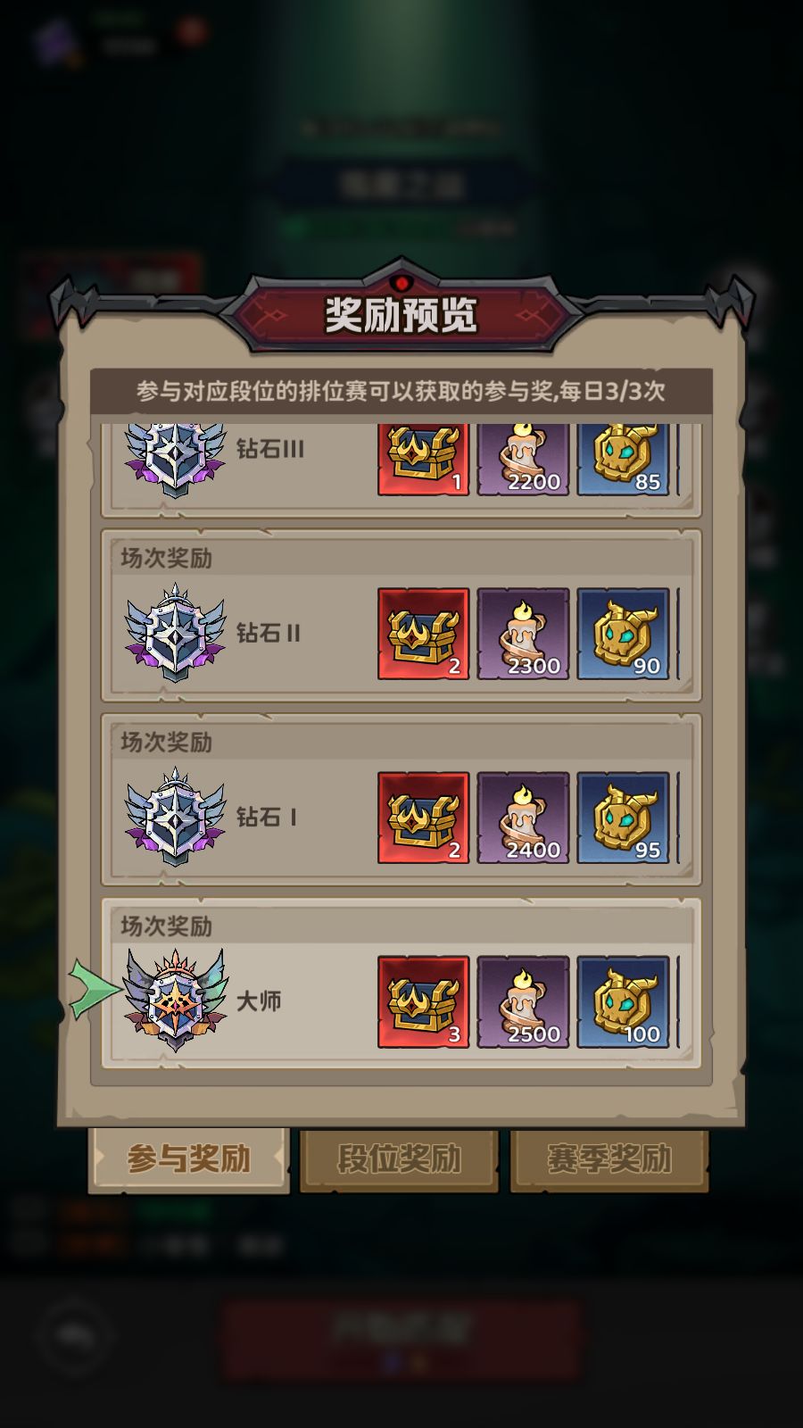 每天只有三次战斗是给奖励的,达到大师后,就不用那么肝了,排名没有额外奖励。