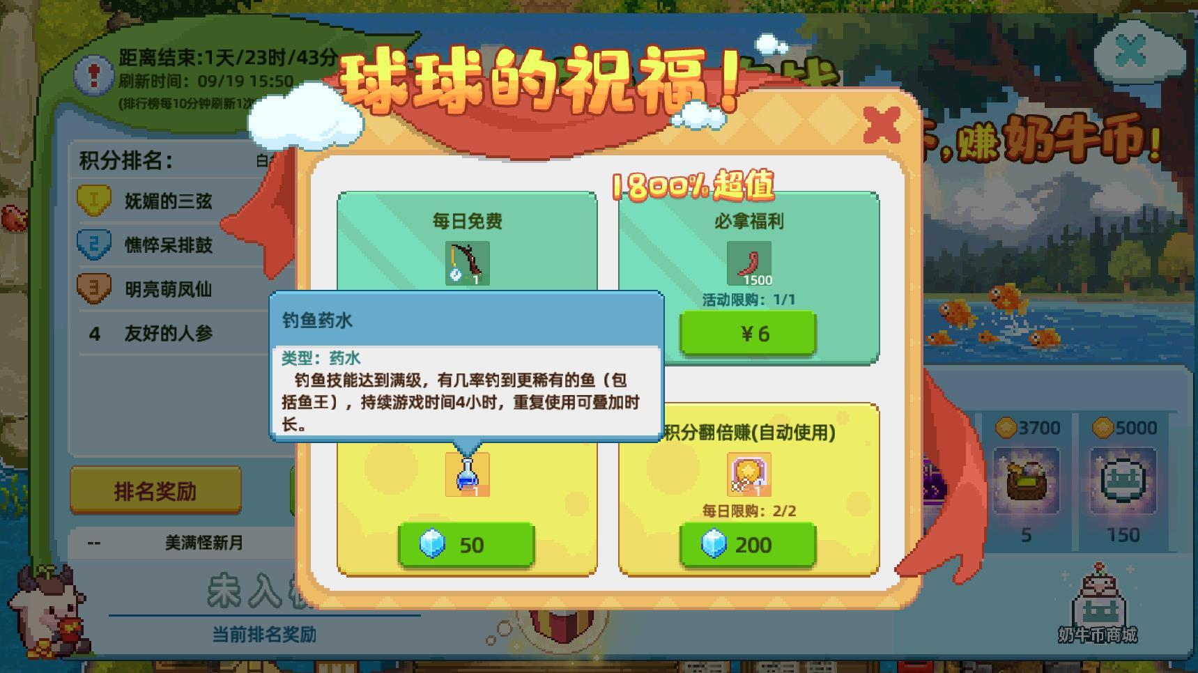 3、新增"钓鱼药水":让每位钓手都有机会挑战鱼王