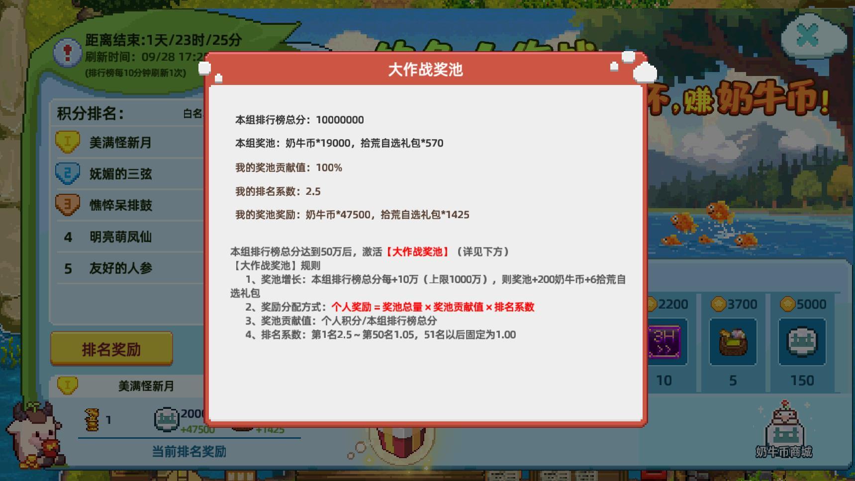 1、动态奖池系统:全组积分越高,最终奖励越丰厚!
