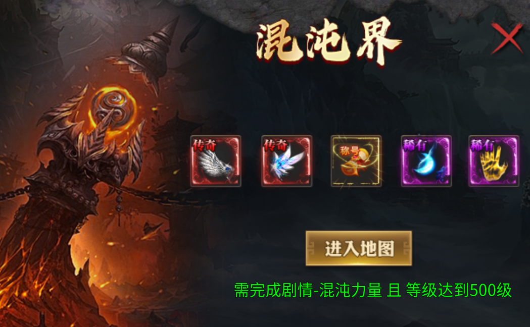 当玩家们收集到足够的混沌力量后,便可以尝试进入混沌界。这一隐藏地图不仅怪物更为强大,掉落也更为丰厚。但请注意,进入混沌界需要玩家等级达到500级,并完成“混沌力量”的剧情任务。只有满足这些条件的玩家,才能一窥混沌界的真容。