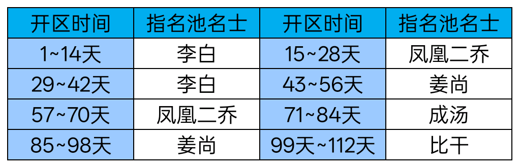 目前游戏内指名轮换池顺序为:每个池子14天,除李白外,各名士第一次轮换池有升星活动,升满可获得150抽+40碎片。如果将名士抽至满星,按次次保底算,需要2160抽。注意,因为350抽天品保底会顶...