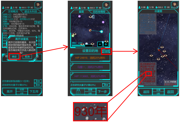 当你离开第一个定居的星球进入航行状态时,可以点击“总星图”来查看