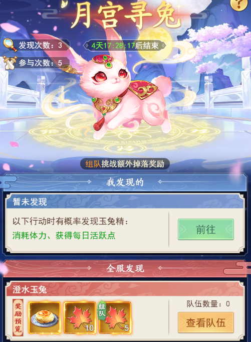 3、发现的【玉免精】会在一定时间后逃跑,发现多个时,只有1个玉兔精会计时;