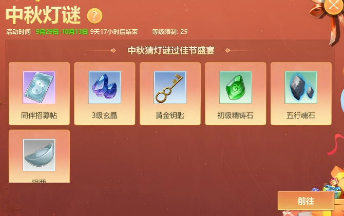 文房四宝齐上阵,猜谜纸上藏机关。活动期间内,大侠可前往临安城内中秋花灯处参与中秋灯谜活动,每日共有7道题目,答对的数量越多获得的奖励越丰厚。
