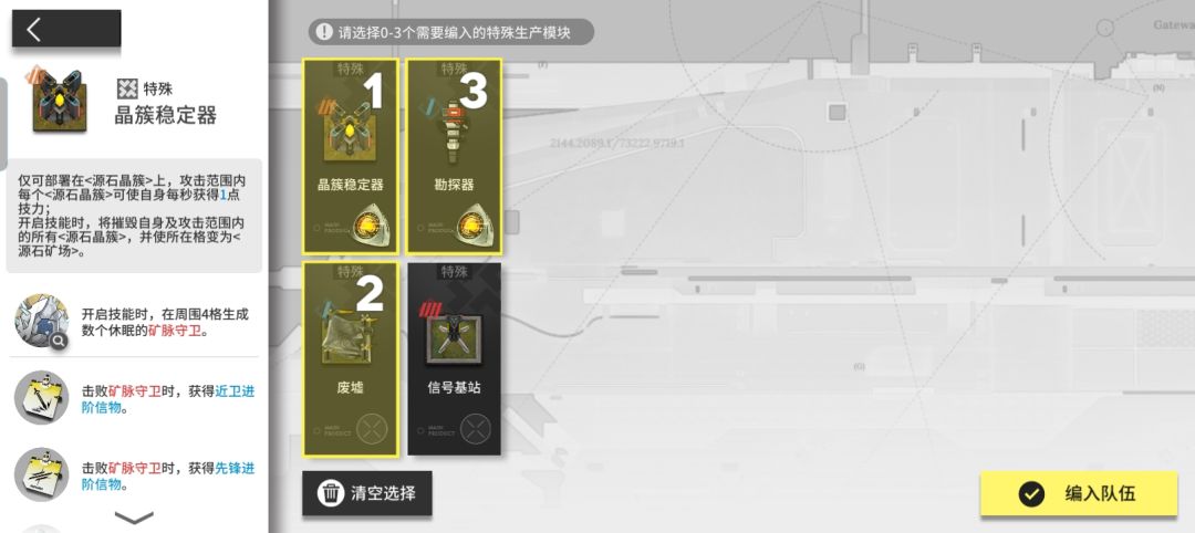 但我要说的是,如果你觉得“矿区”被勘探后变成的“矿场”很碍事的话,可以通过在其上部署“晶簇稳定器”来将多格“矿场”聚在一格,然后再次部署“晶簇稳定器”并撤回“晶簇稳定器”,这时你就会发现矿场永久消失了,这一整局都不会有碍事的矿场了