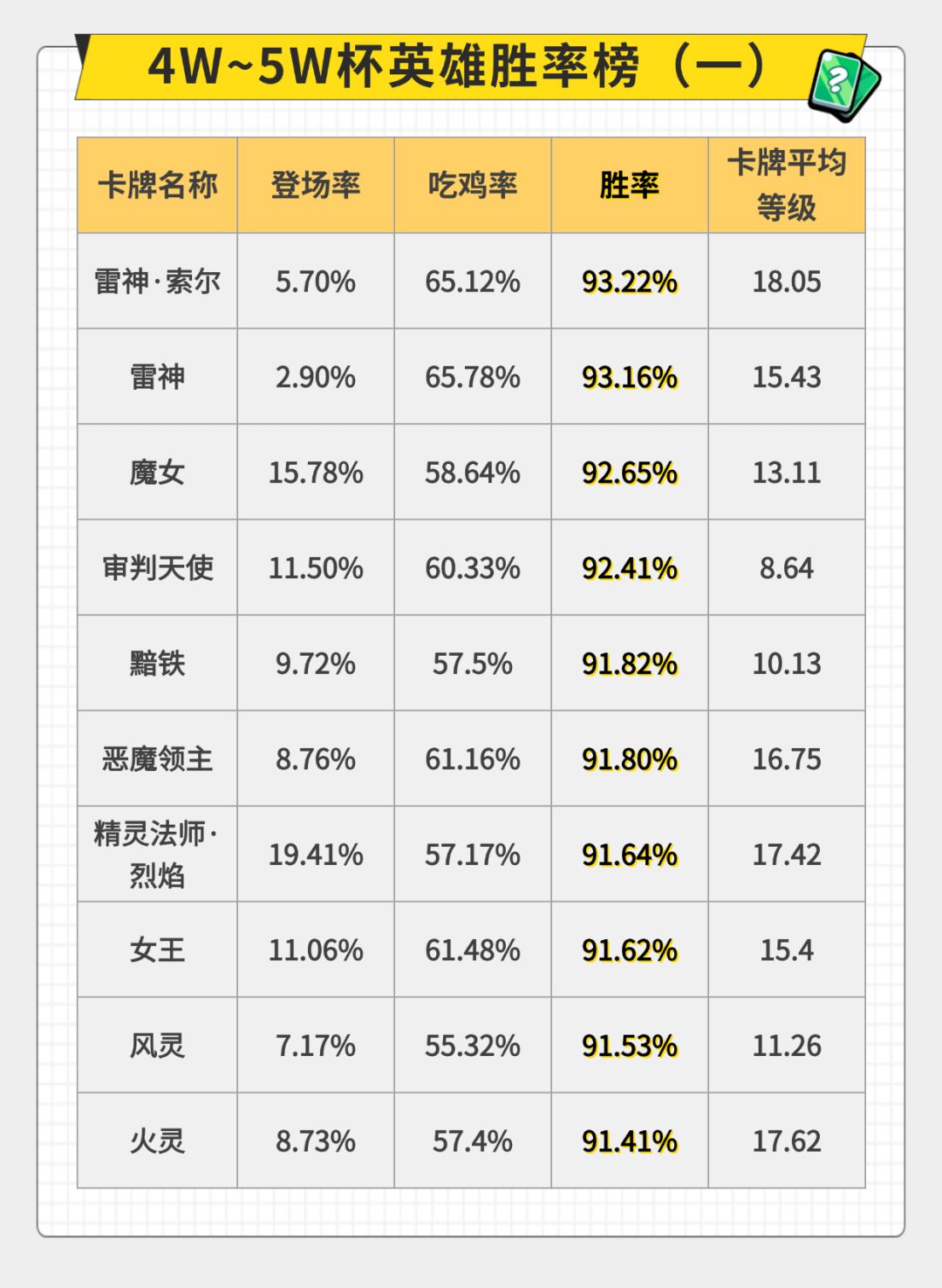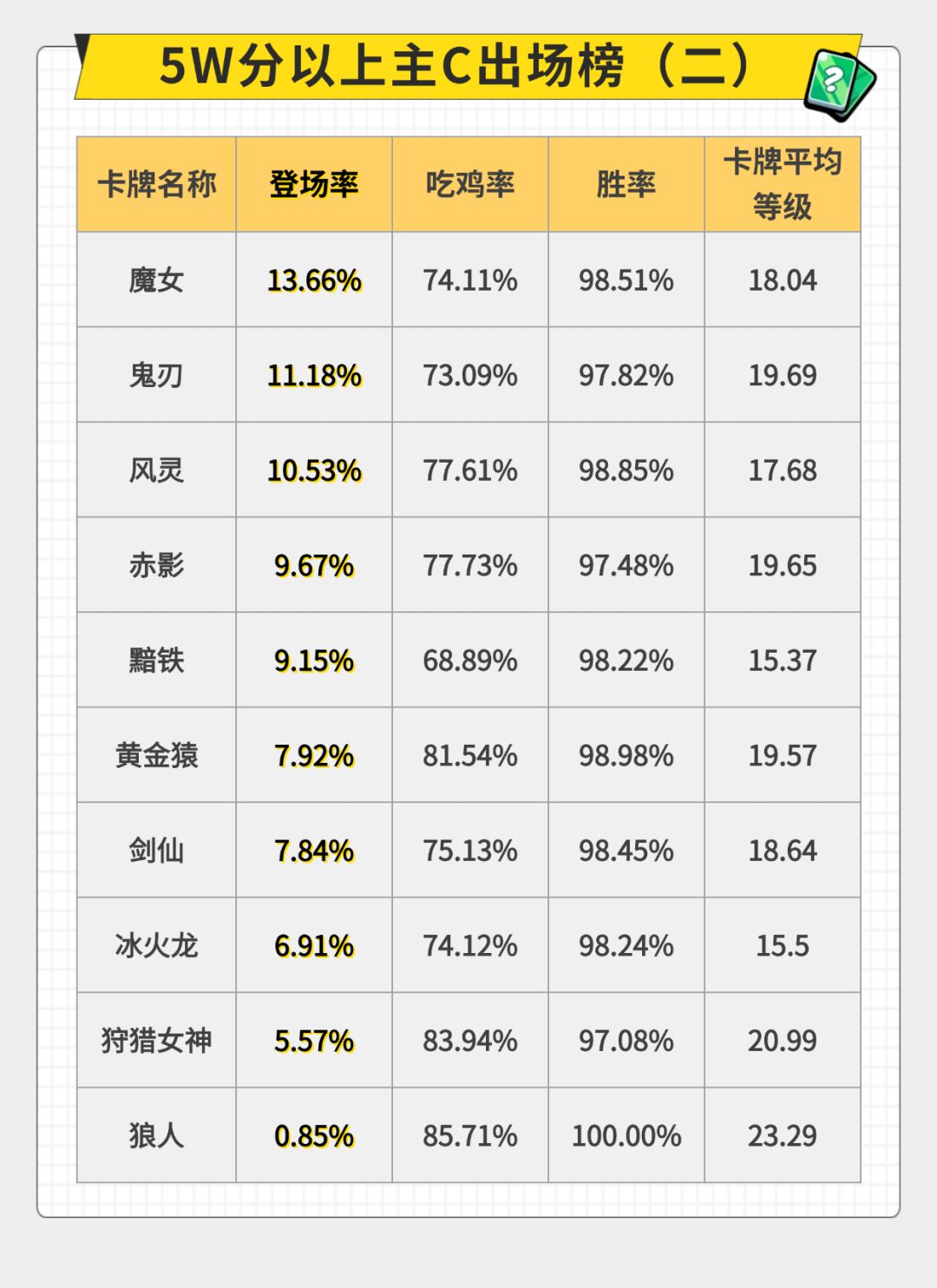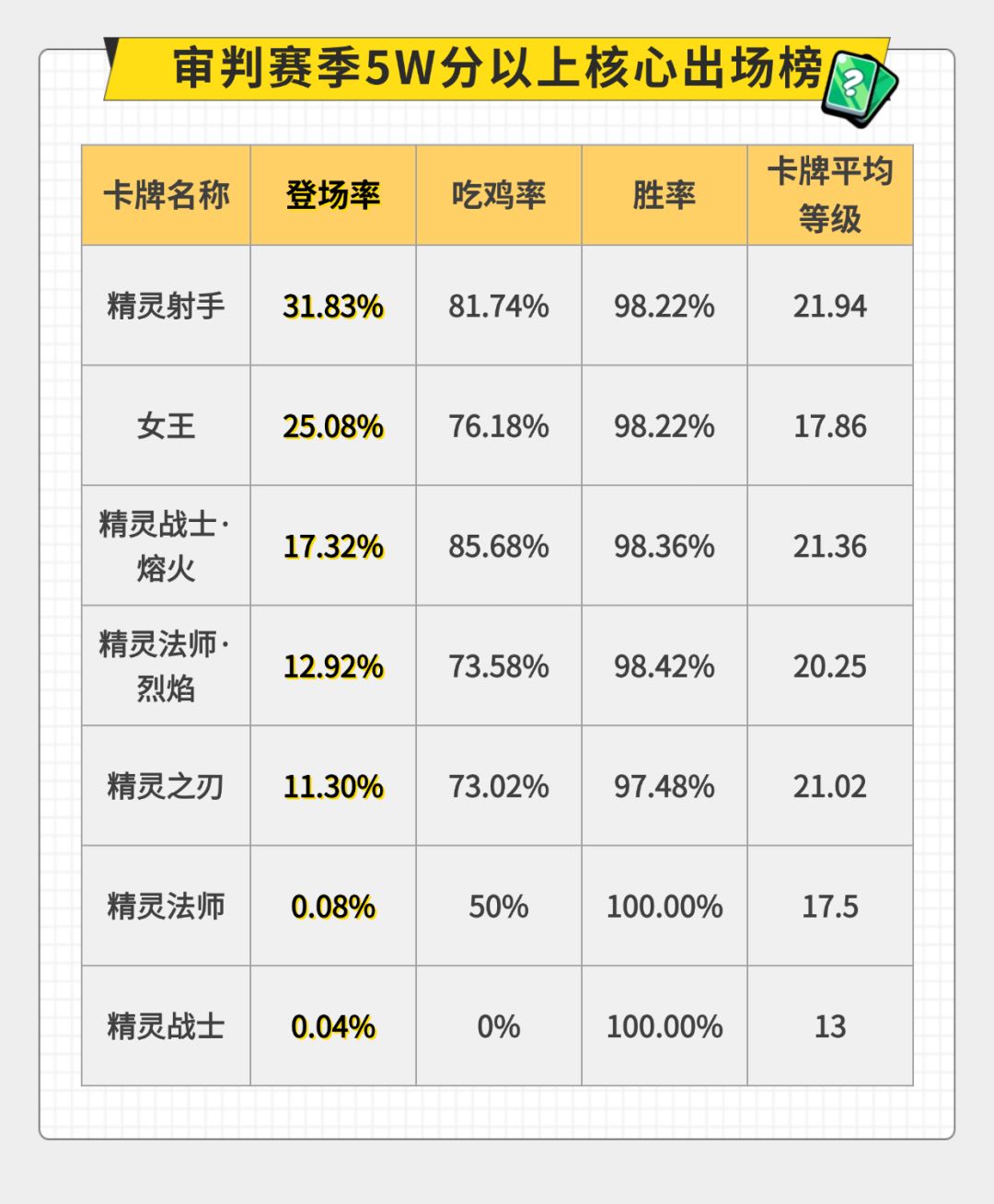 审判赛季 9月26日-9月28日 40000分以上对局卡牌数据分布