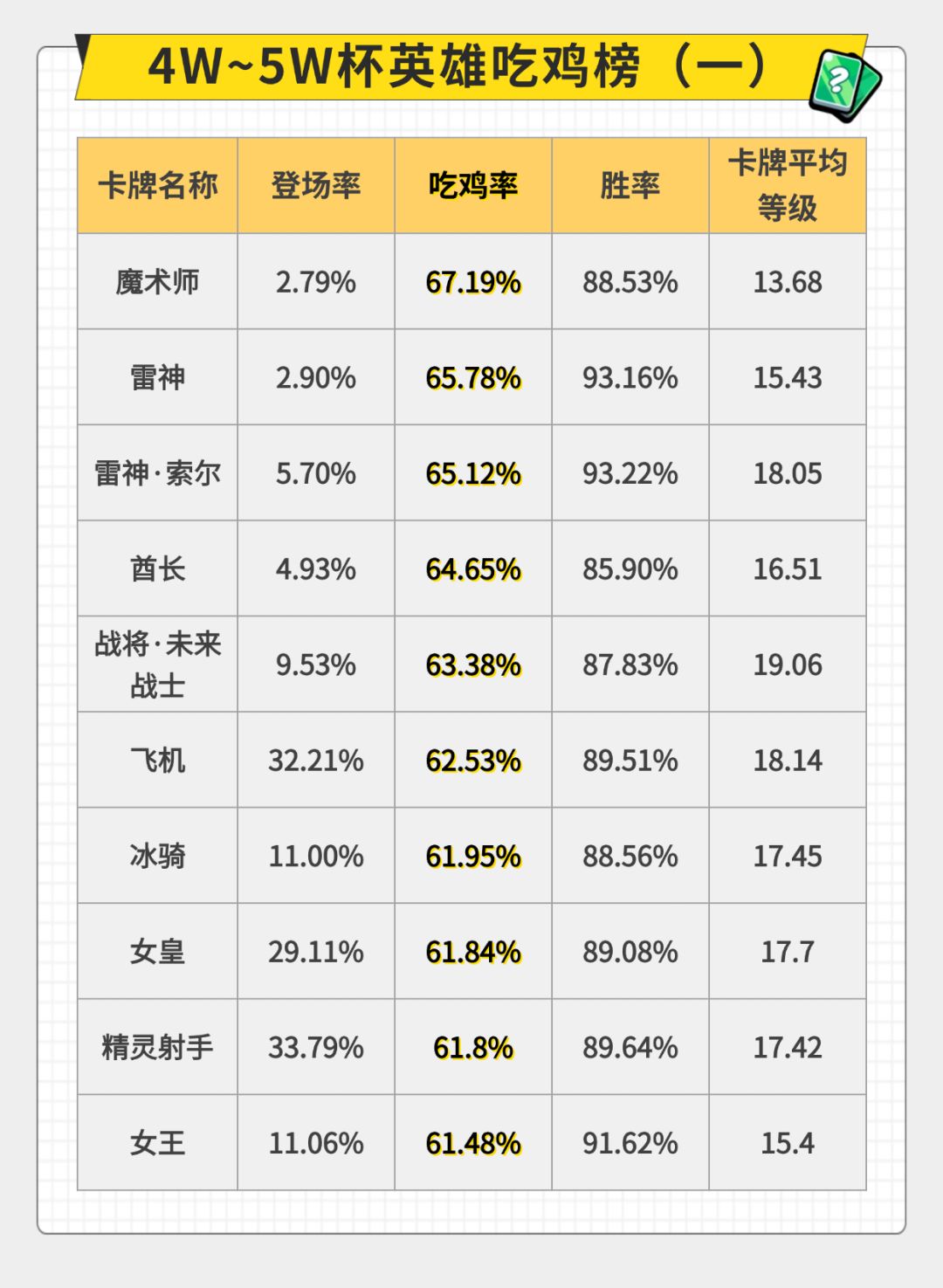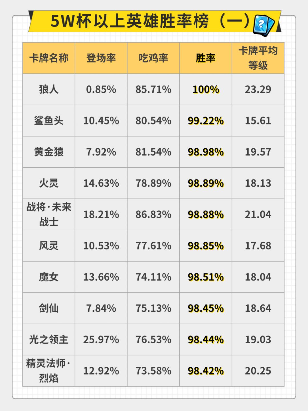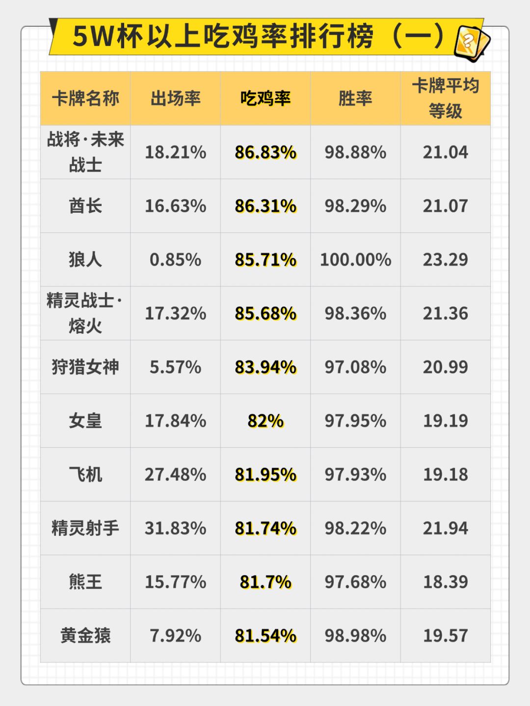 审判赛季 9月26日-9月28日 40000分以上对局卡牌数据分布