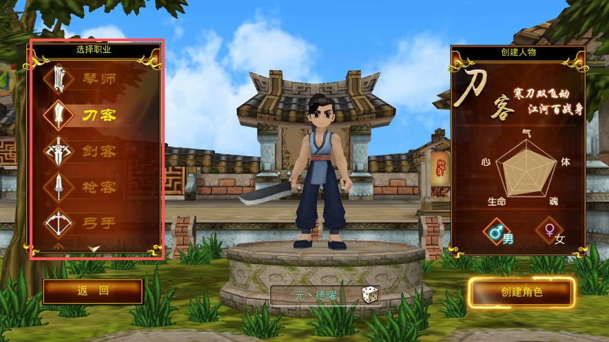 游戏完美复刻了端游的六大经典职业,刀客、剑士、枪客、医师和弓手,琴师,并保留了充满抉择的正邪两派转职体系,让每位玩家的成长之路都独具个性。