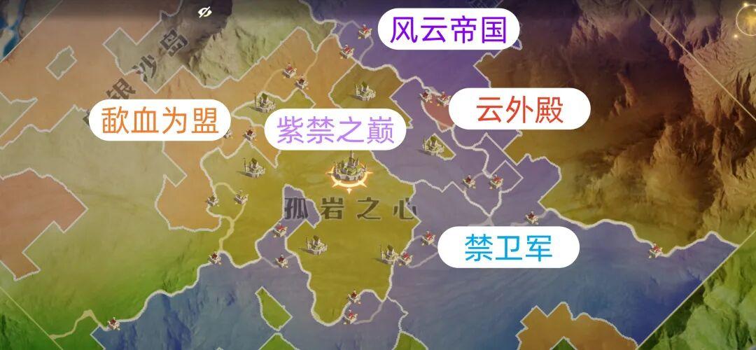两方势力在决胜州关口前爆发决战,经过数日鏖战,最终【紫禁之巅】与【歃血为盟】成功封锁了【风云帝国】与【云外殿】同盟通往王城的路线。后续王城或将由【紫禁之巅】占领。