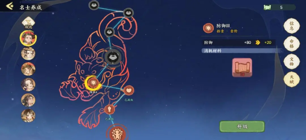 主力队伍:优先将5 名核心名士升级,以解锁全部技能与属性。