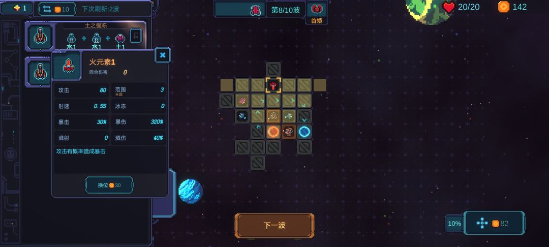 然后就是这游戏主打的五行系统合成了,三个炮台可以合成,它管这叫重构,合成塔可以升级,不同的合成配方技能还不同……目前体验还不错。