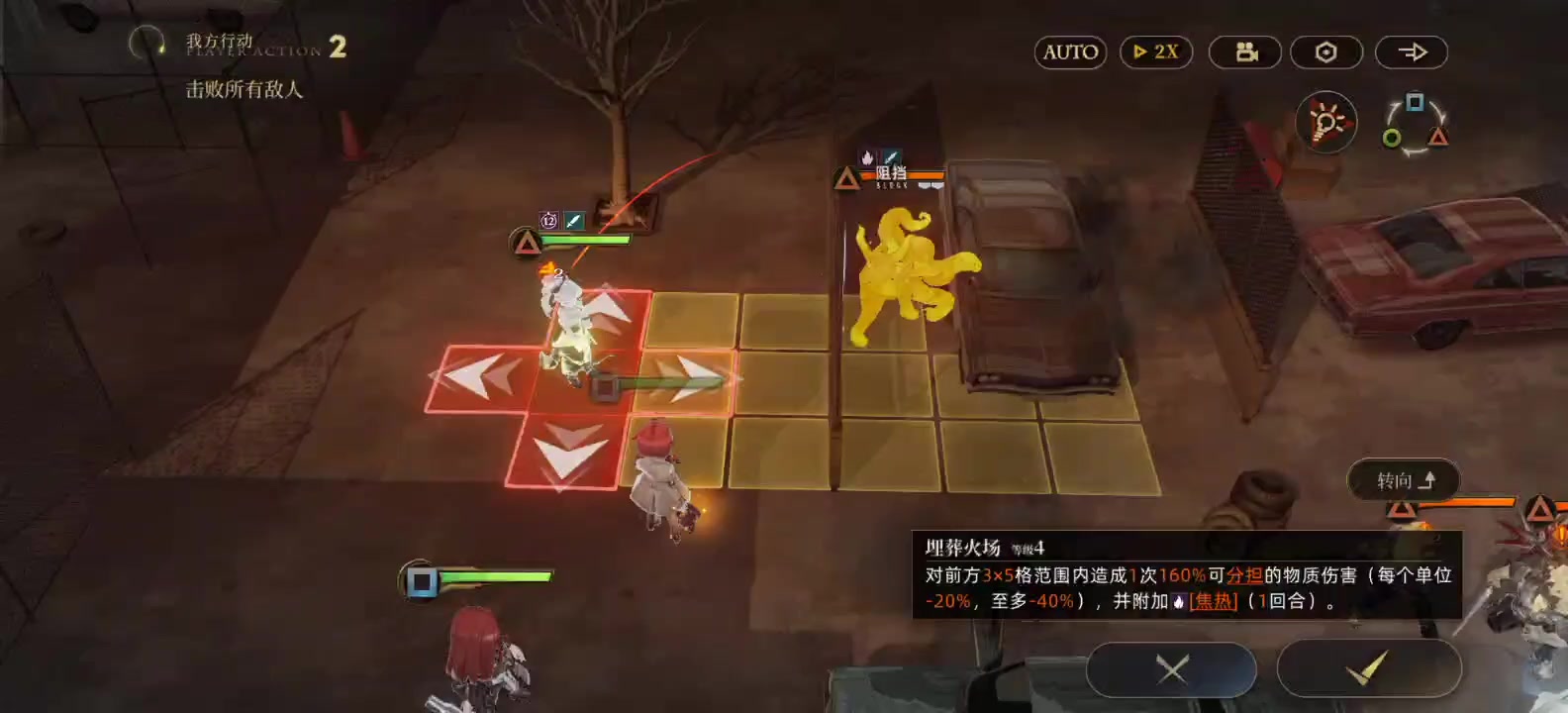 因此我们在面对多掩体,多偏斜的敌方单位时,虽然技能和普攻伤害无法打出来,但是可以通过给其多次挂焦热,来触发焦热伤害。