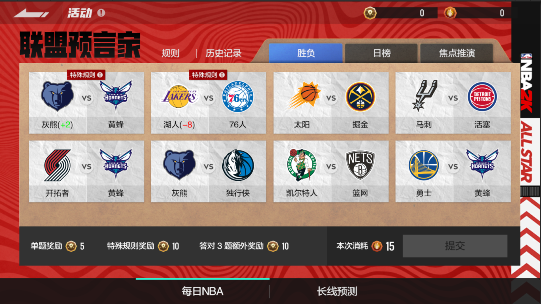 1. 本次更新后,将开放联盟预言家-每日NBA的比赛预言。