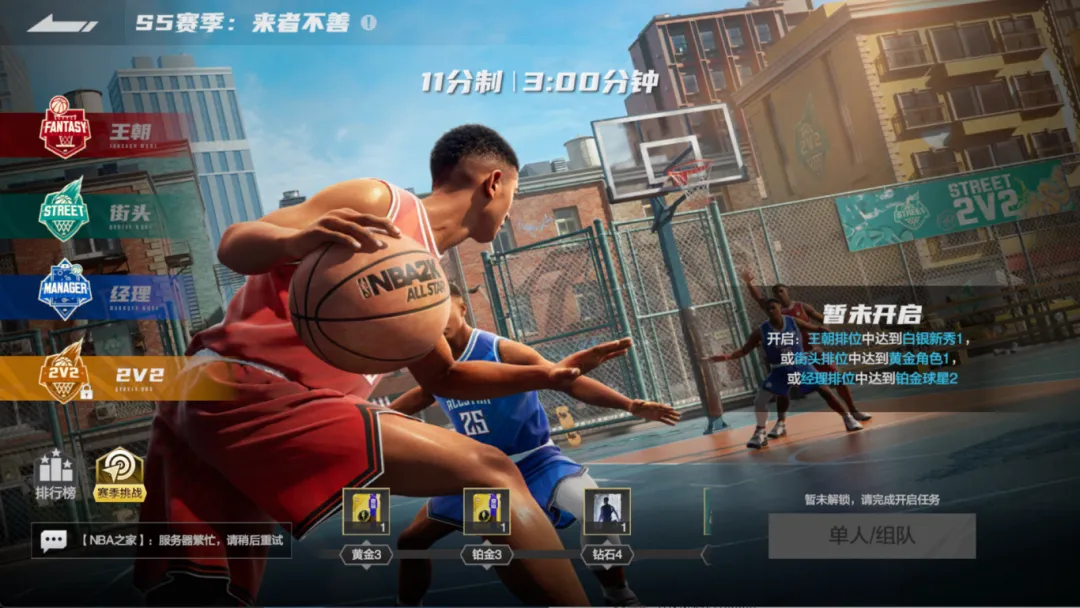 3、参与条件:角色等级达到5级;王朝排位达到白银新秀1或街头排位达到黄金角色1或经理排位达到铂金球星2即可参与