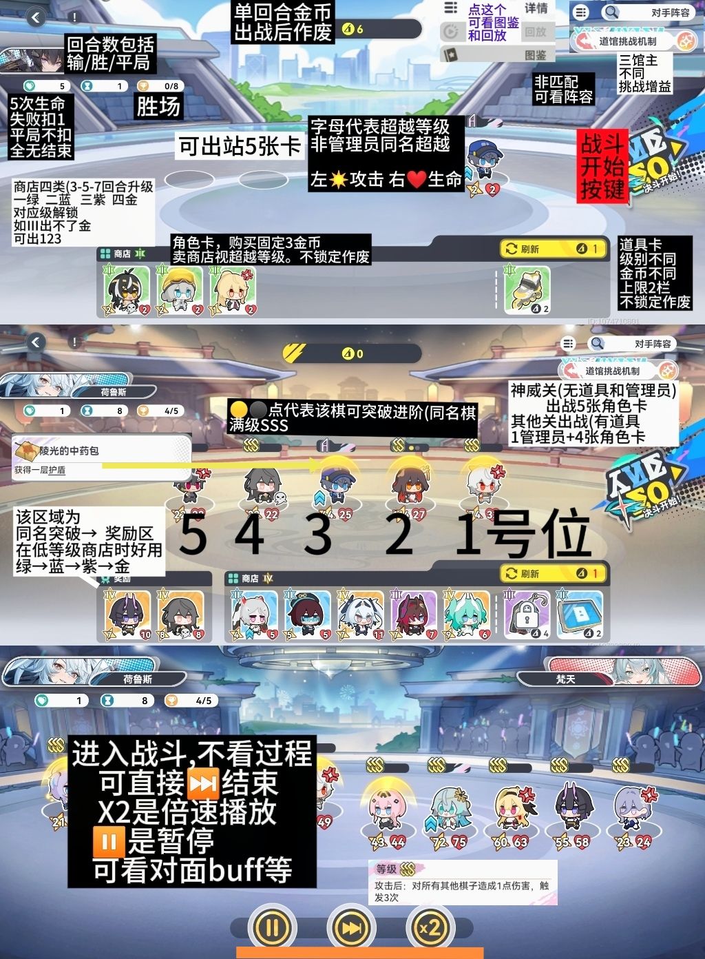 回合:指战斗前准备+战斗。有在消耗金币阶段增益 有在战斗中增益。