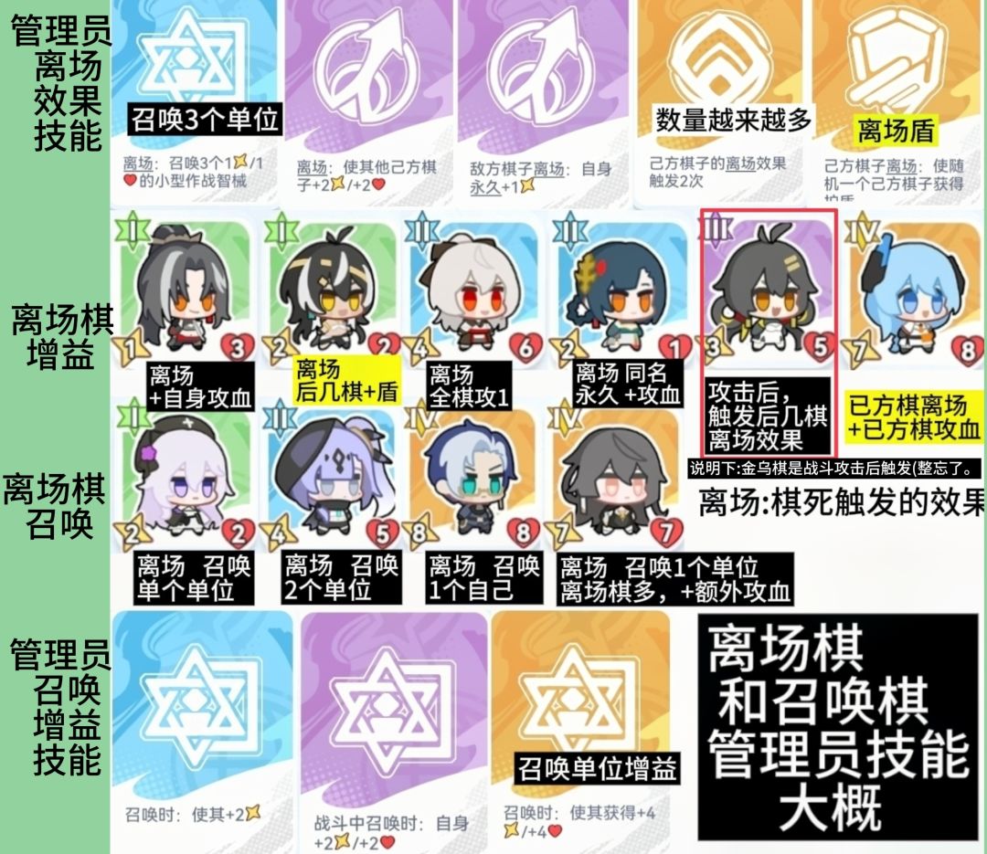 ⑶离场棋子和管理员技能: