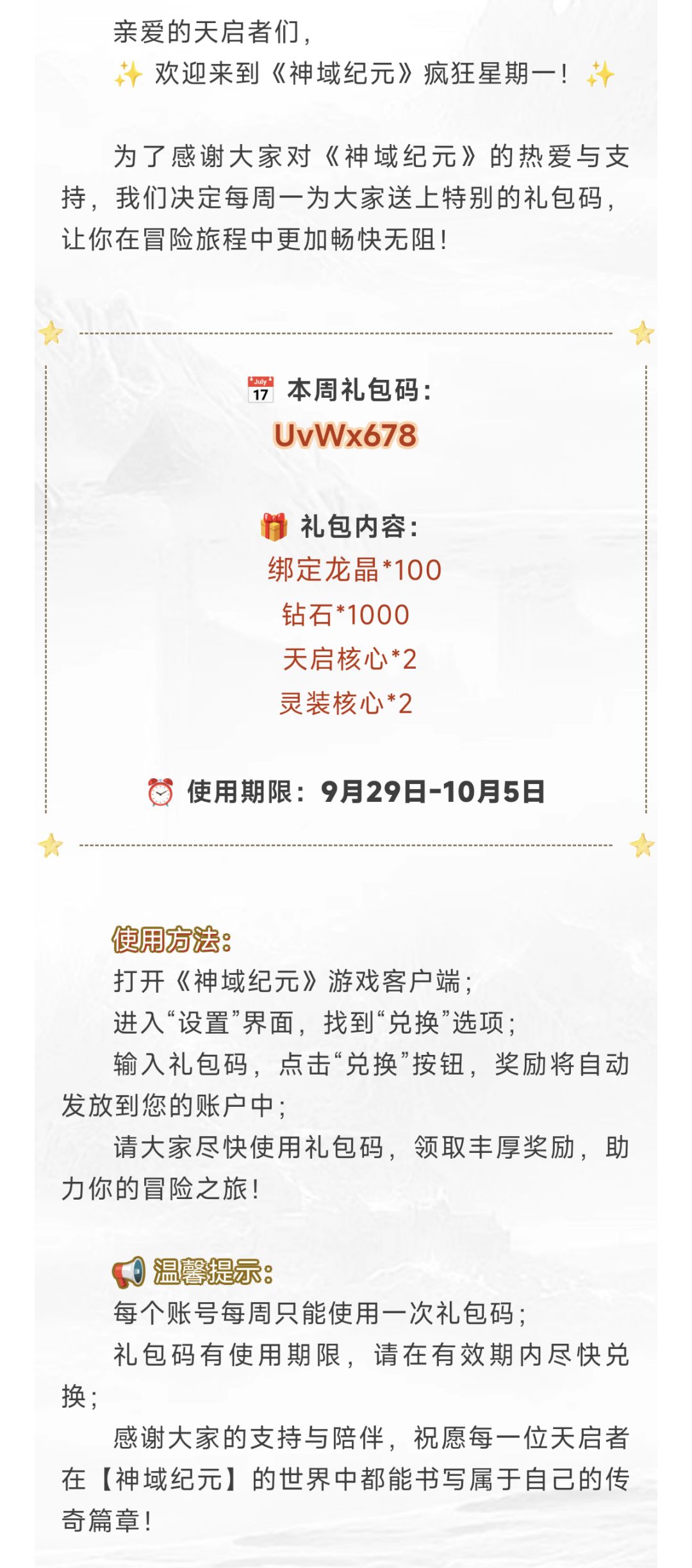 【神域纪元】疯狂星期一!礼包码放送!