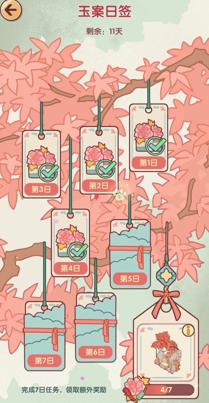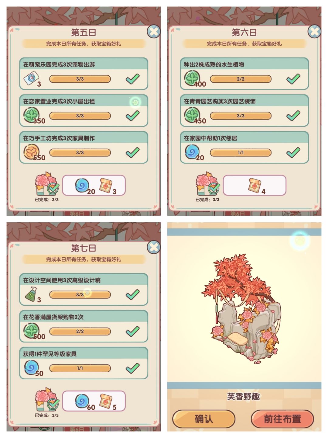 🌺参与限时活动「玉案日签」有机会获得限定家具「芙香野趣」、芙香设计稿*20、蜗壳币*240等奖励。