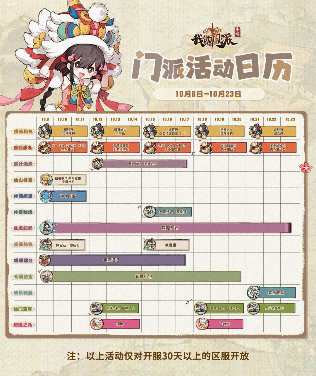 诸位掌门好呀!小师妹带来了本次的活动日历,快来一起看看吧——