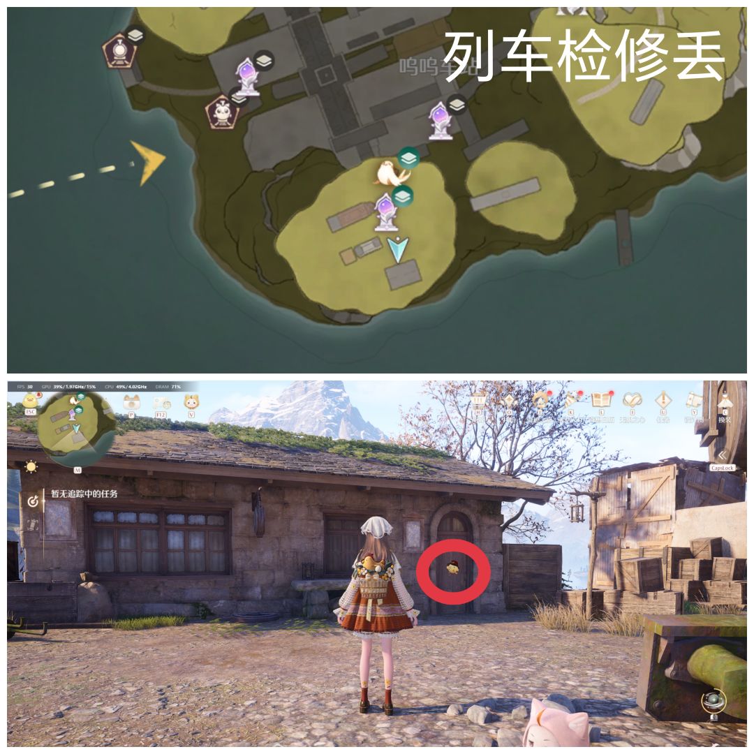 列车检修丢—呜呜列车修理站往南走一点就能看到啦