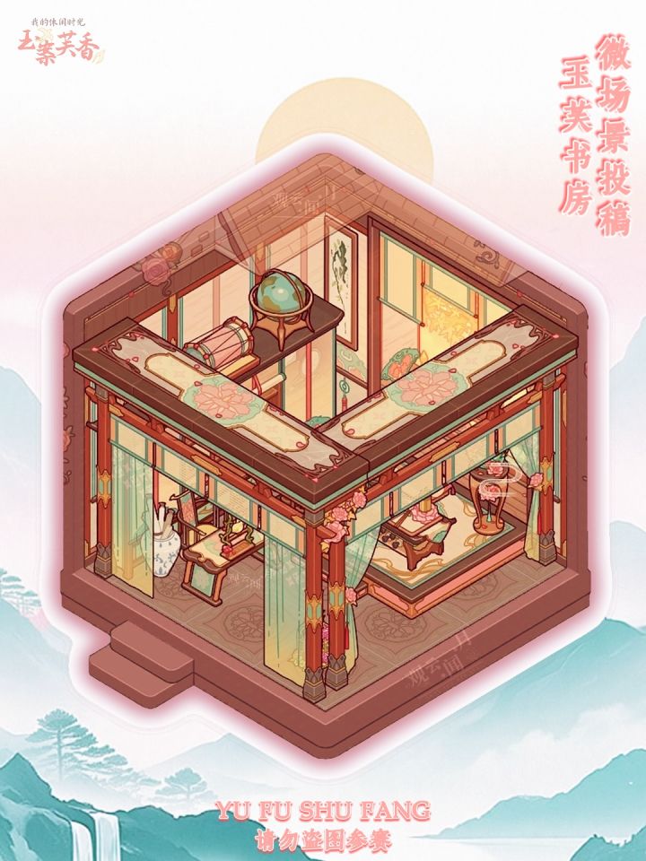 ✦阁楼支架和地台是本期家具的MVP,那就搭建一个华丽的古风书房吧。