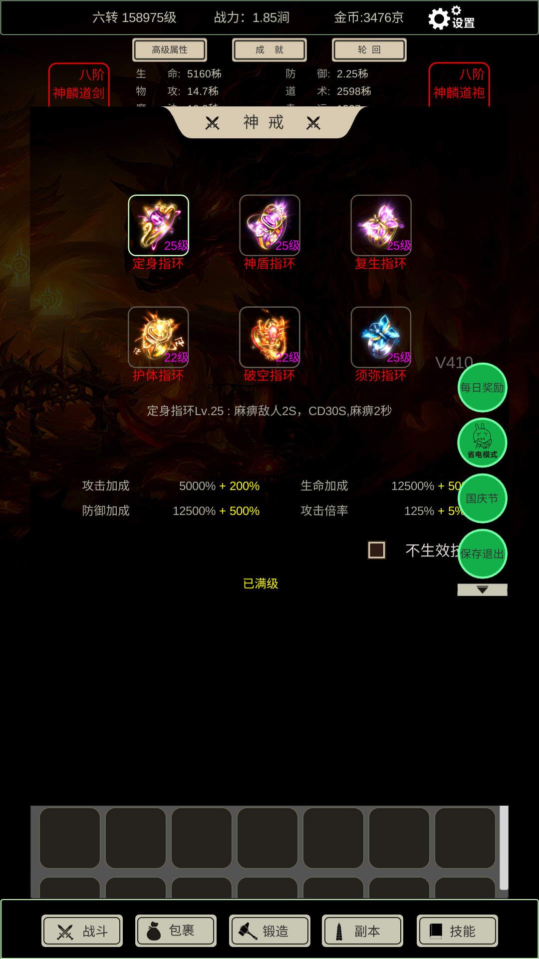 特戒自选:前期先满六个拿齐一套优先 特戒最高升20阶 然后需要法宝"神戒之源"提升上限(目前最高还能提升200的样子) 预计5转就会碰到上限 而且 塔进一万层后的一段时间内 百层给一个特戒自选 不是很缺 缺的是低阶法宝'特戒之源'