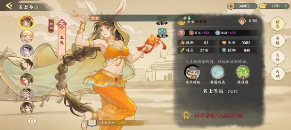品阶:名士分为天、地、玄、黄四个品阶,天阶稀有度最高、基础属性最强,黄阶仅适合新手前期过渡,玄品、地品为中期主力过渡或功能补充。