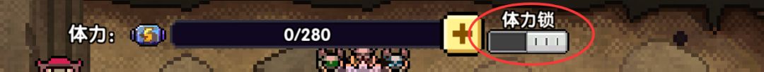① 小秘境通过4层后,界面上方出现体力锁,将其点亮,保证我们推图的时候不会消耗体力(体力留给资源本)