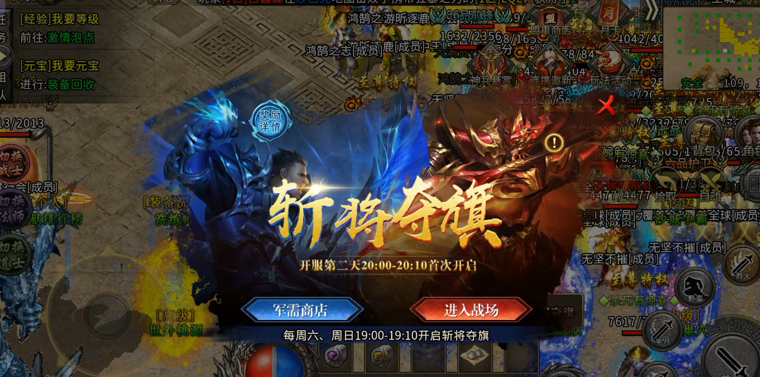 - VIP666:20w 绑定元宝 ×1、大量红药 ×200、特权体验卡(30 分钟)×1