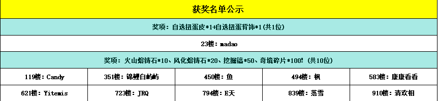 -------------------------------------------------------------(中奖名单)--------------------------------------------------------