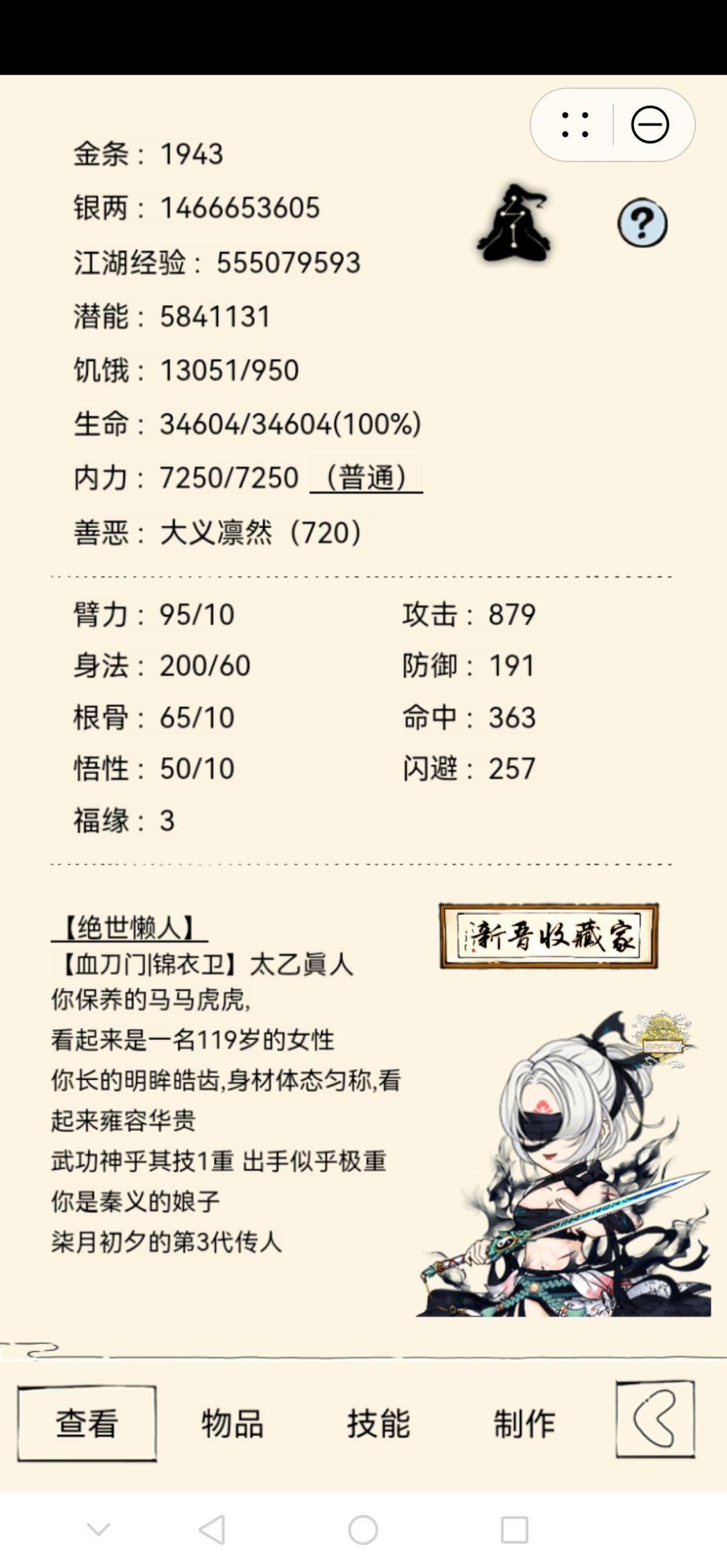 娱乐:流星蝴蝶剑(半领悟)/龙骨鞭法(金丝红绫)/阴阳无极剑(失败的领悟),太白经不够只能三出师。