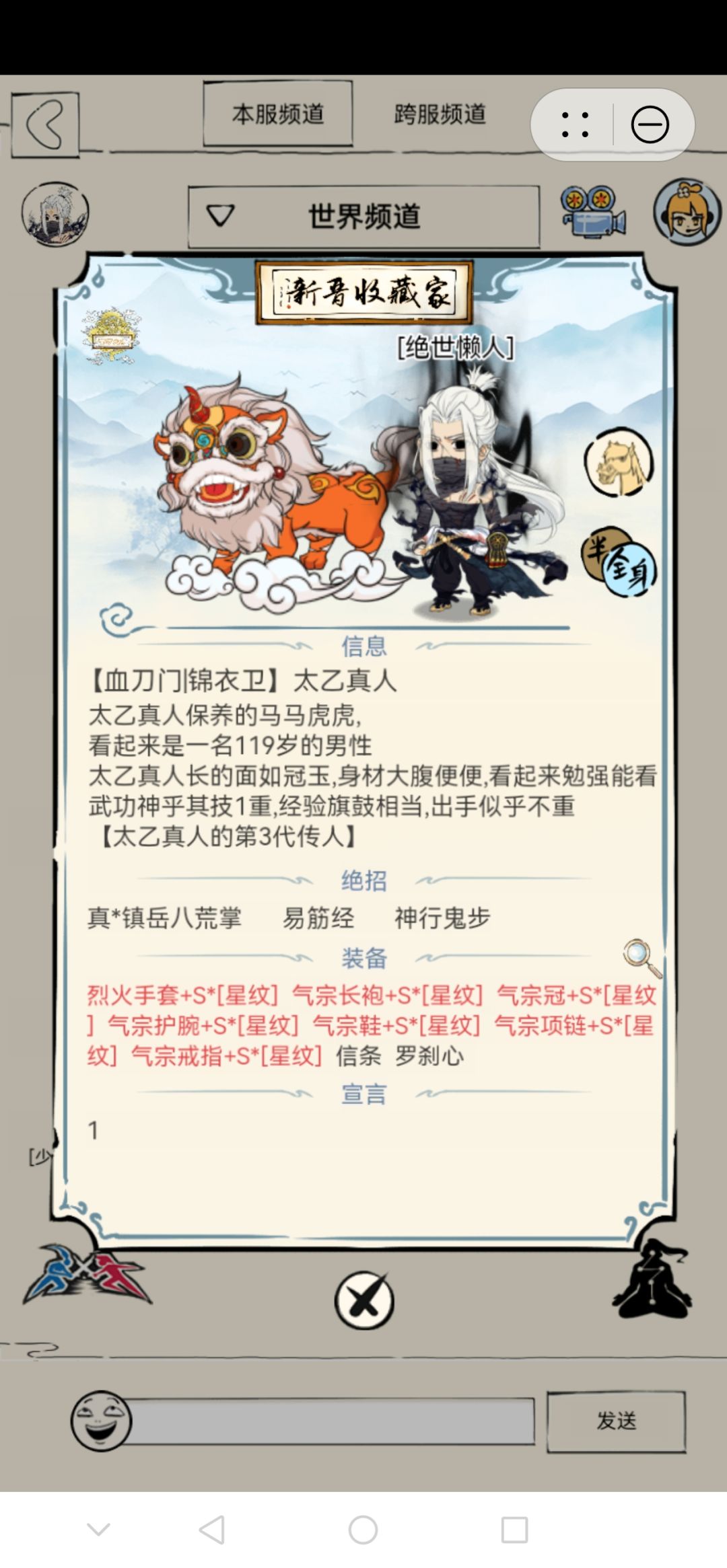 副手:烈火手套+S(玄铁),550真·镇岳八荒掌+无量神功,气宗七件套(玄铁S+A)混搭,用的少懒得锻造重铸S了。