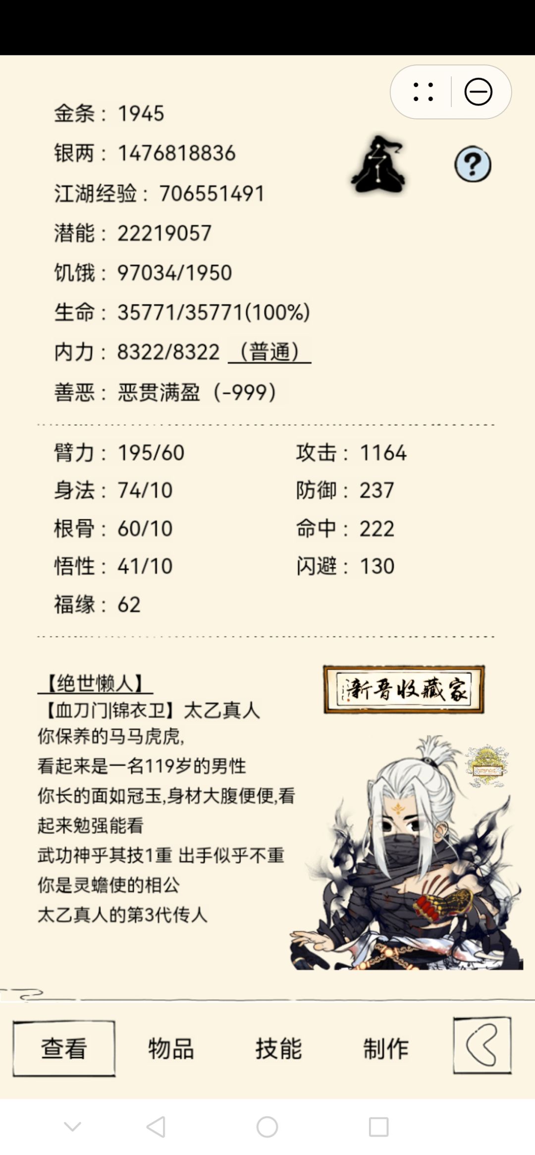 娱乐:485血影步,鬼影步,无量神功,无相神功。内功已够,可四出师。