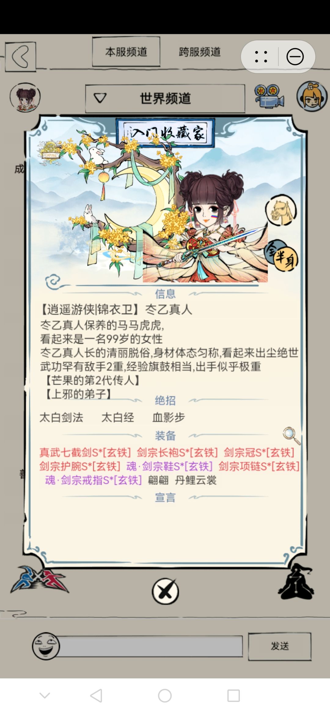 主玩:521太白剑法(已领悟)/阴阳无极剑(失败领悟)+400太白经+443血影/疾风步;装备:真武七截剑S(玄铁)·七件套;