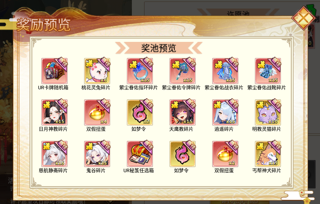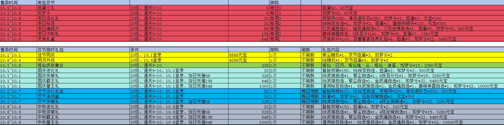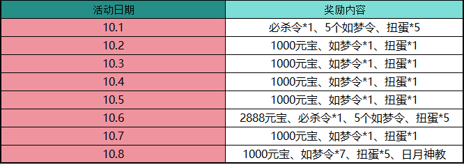 2、10月1日到8日新增活动道具,如梦令,必杀令,双假扭蛋,月饼