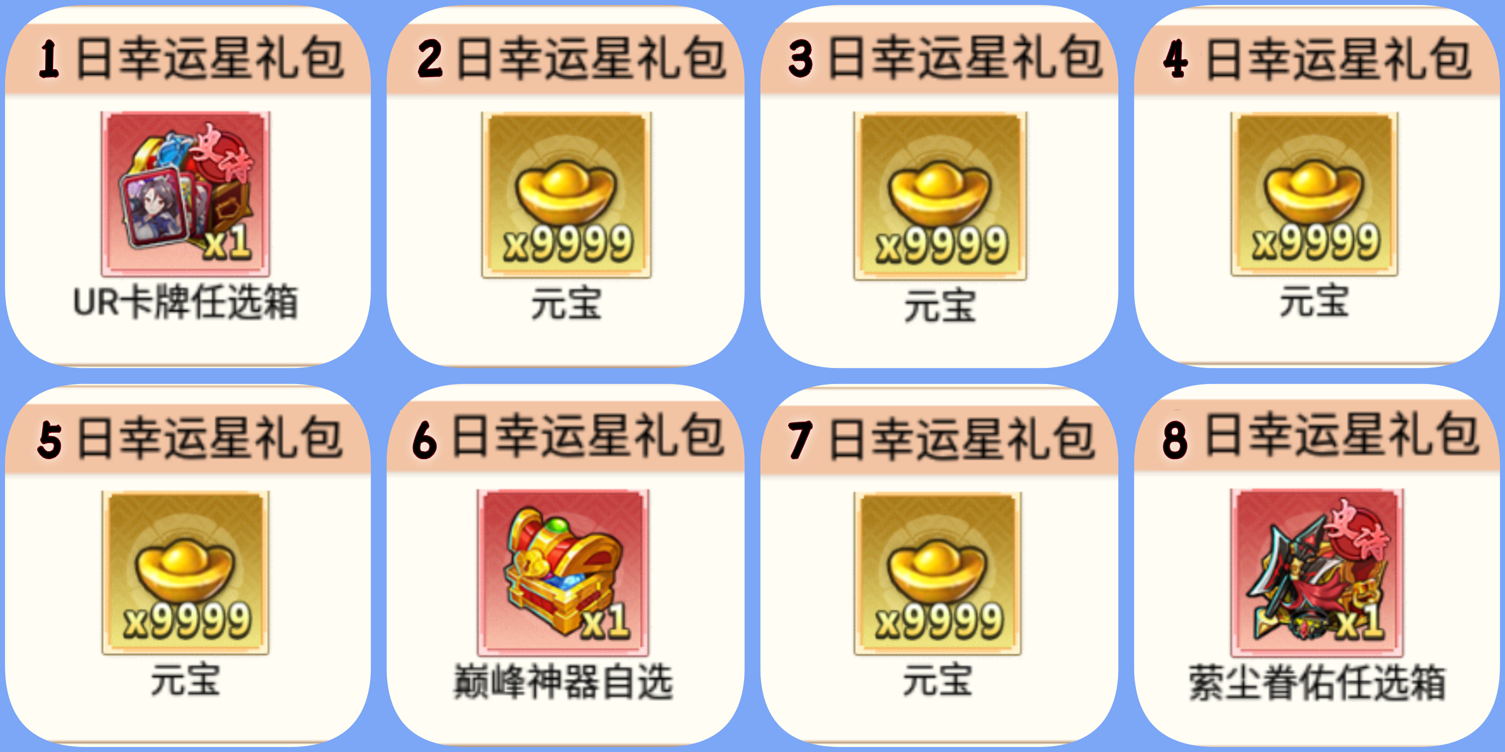 幸运星:活动通过玩家领取的幸运星号码每天抽取一位玩家,发放丰厚的奖励。