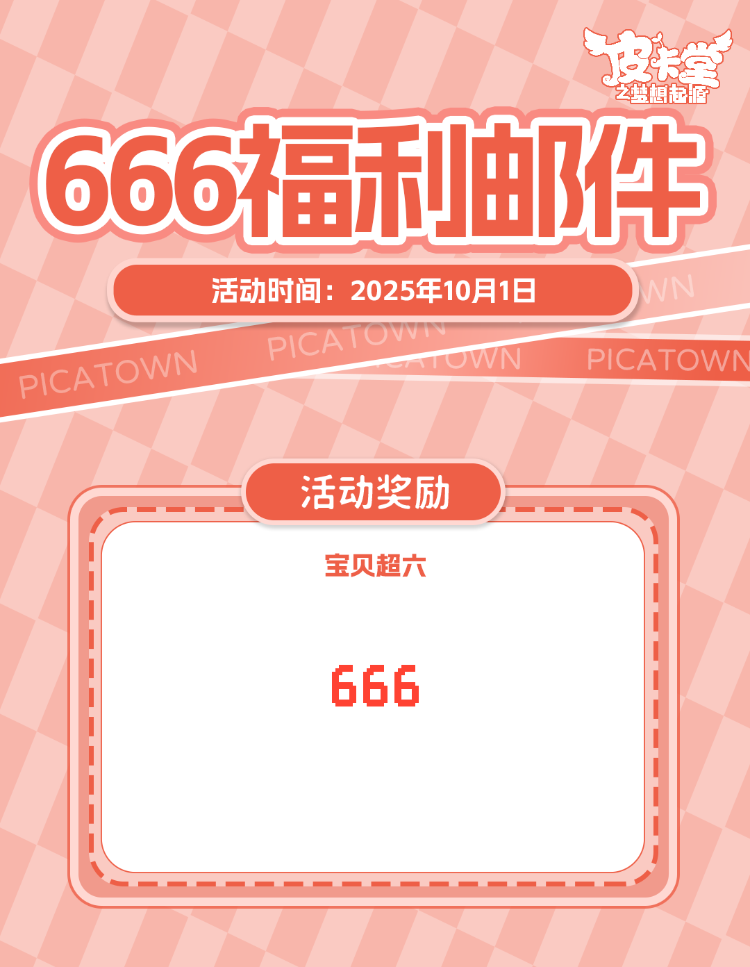 -【开服666天福利】我们的“皮卡堂之梦想起源”,已经正式起航666天啦!10月1日登录游戏可在邮件领取666天特别福利哦~