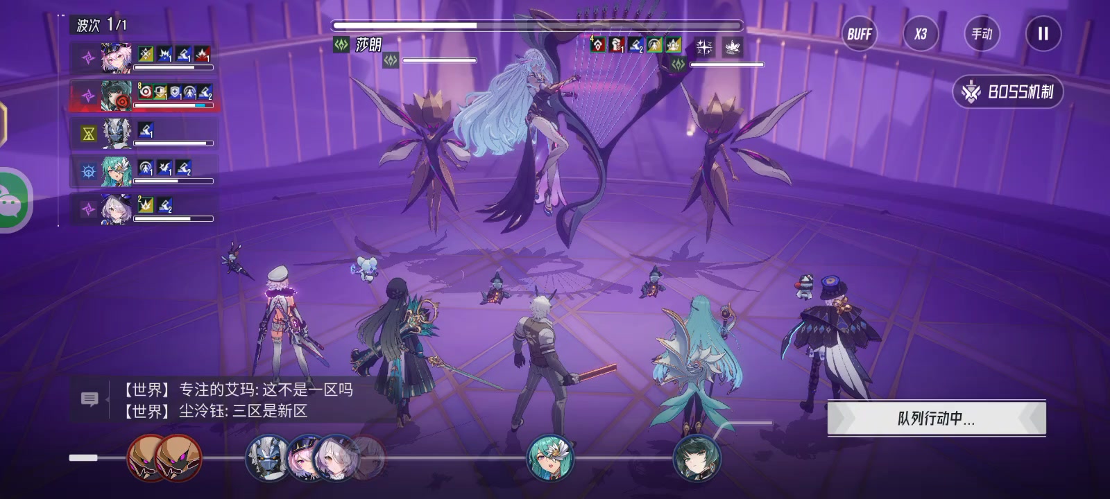 第二面:两朵花极其恶心,会眩晕角色不让出手,由此需要绫罗在小怪行动前开出大招为全体套上免疫,此阶段仍然是梨梨拉条莉拉姆进行速杀,避免被眩晕多次一波崩盘