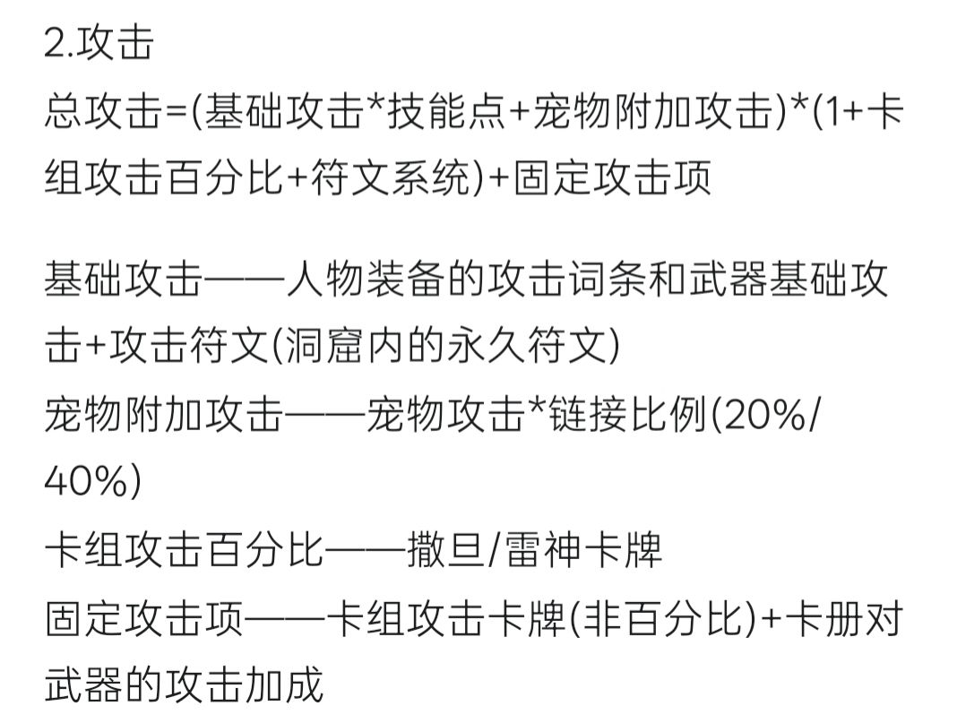 攻击下限:[(3.3+永久符文)*1.1+宠物下攻*0.2]*(1+卡牌百分比+符文百分比)