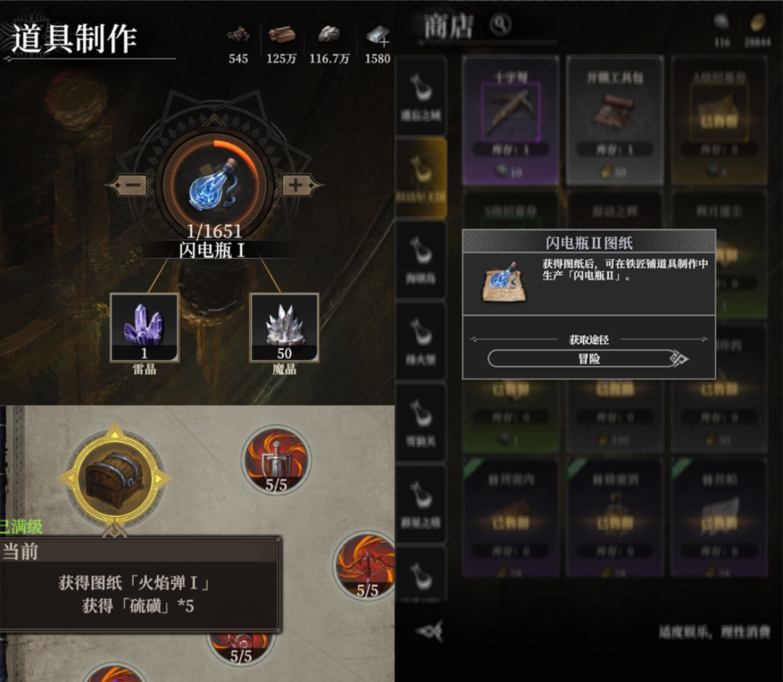 战斗开始后,需要手动拖动道具到目标单位来施放道具。获得图纸后即可在铁匠铺中制作战中道具,冒险事件、旅行商人、法典处都有可能获得图纸哦。