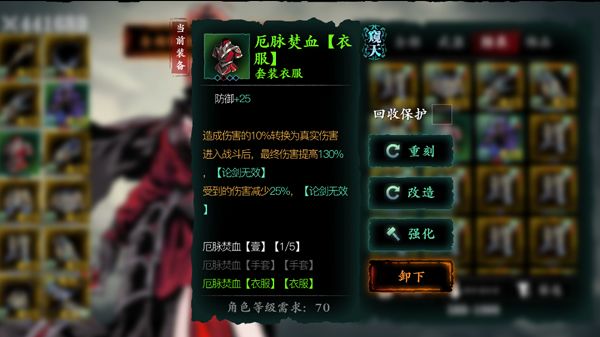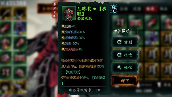 上衣,护肩,项链处的装备每一件都有宗师版本,宗师版本的装备相比于普通版本的装备掉落概率更低且无法通过宗师锻造获取,但会增加一个蚀灭增伤+5以及杀意值上限+3的词条。