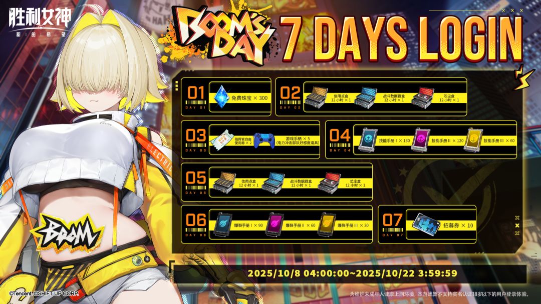 活动期间内的任意7天中,每日登录即可获得奖励,累计登录7天即可获得包括招募券、养成资源在内的全部奖励!