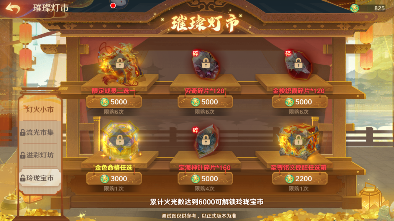 点亮花灯后本服的火光数将会增加,当本服火光数累计达到一定数量后,就可以提升华灯庆典中的掉落奖励,并在璀璨灯市中解锁更多可兑换内容。当累计火光数达到对应要求后,守护使大人便能使用火光兑换荒神「穷奇」碎片、灵骑「金梭织霞」碎片、仙藏「定海神针」碎片、限定战灵二选一等奖励。