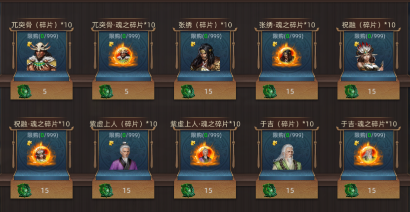武将兑换商店常驻上架武将碎片*10&魂碎片*10