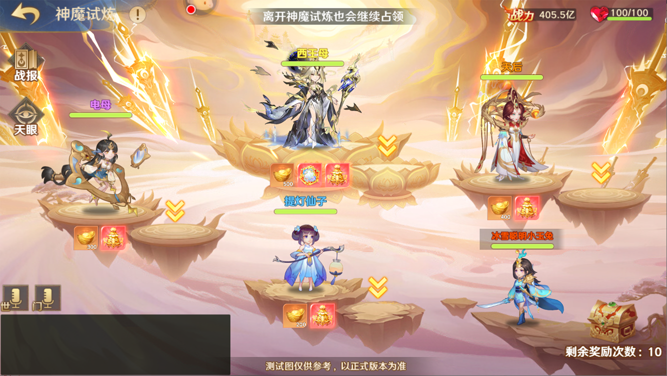 1、在神魔试炼中有各种不同难度的试炼点,占领试炼点达到指定时间可获得对应奖励;
