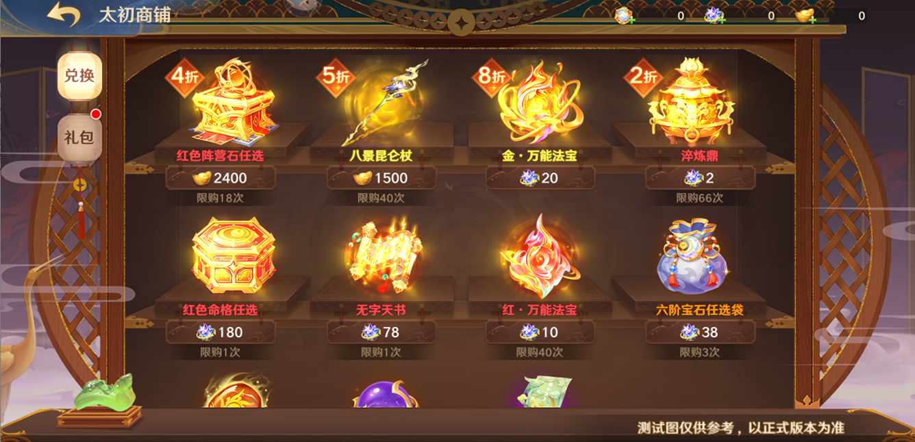 活动期间守护使大人可以在太初商铺-礼包使用元宝购买太初宝鉴*10。每日还可以免费获得太初宝鉴*1。