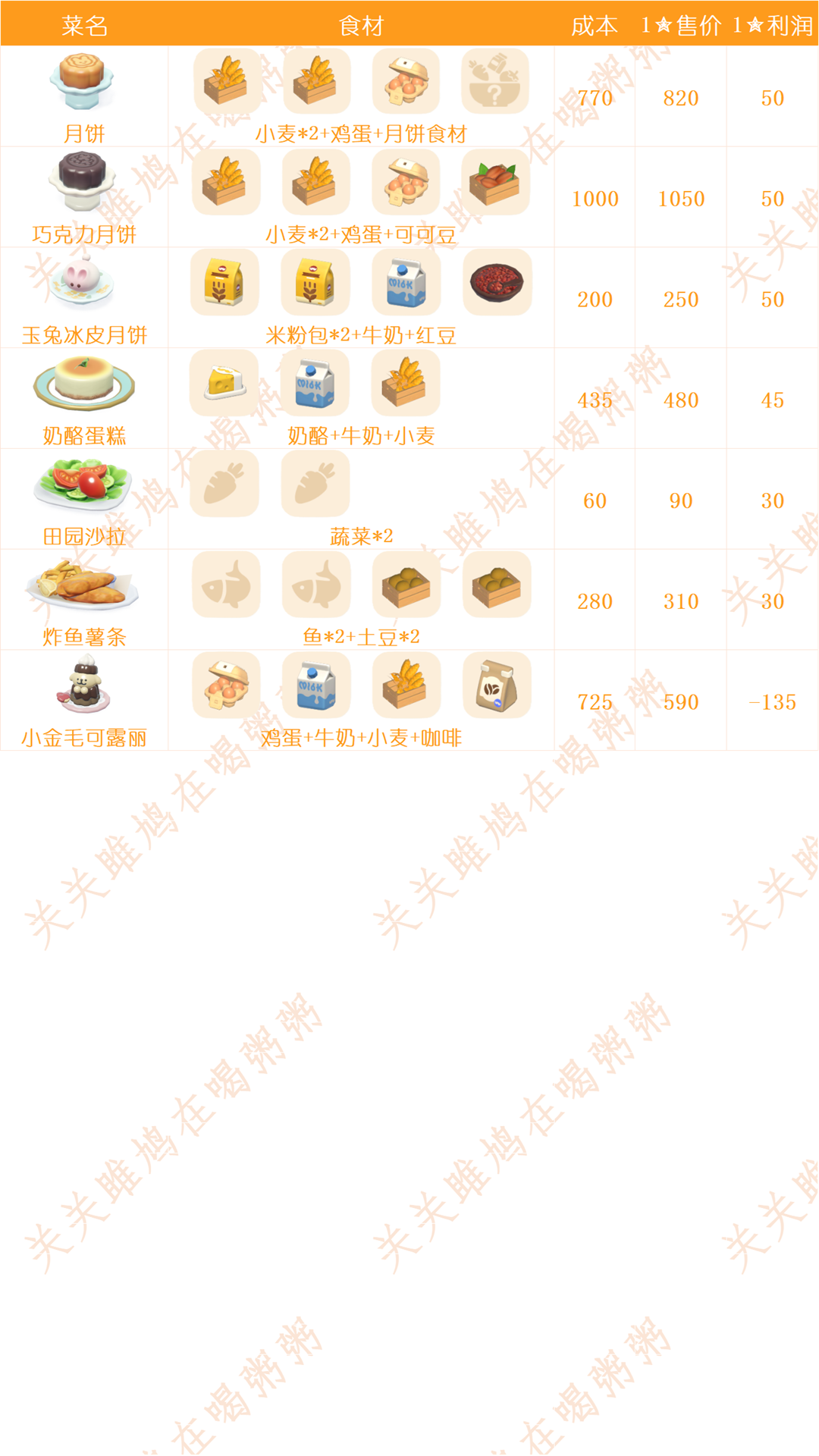 3编:更正部分食物成本价。