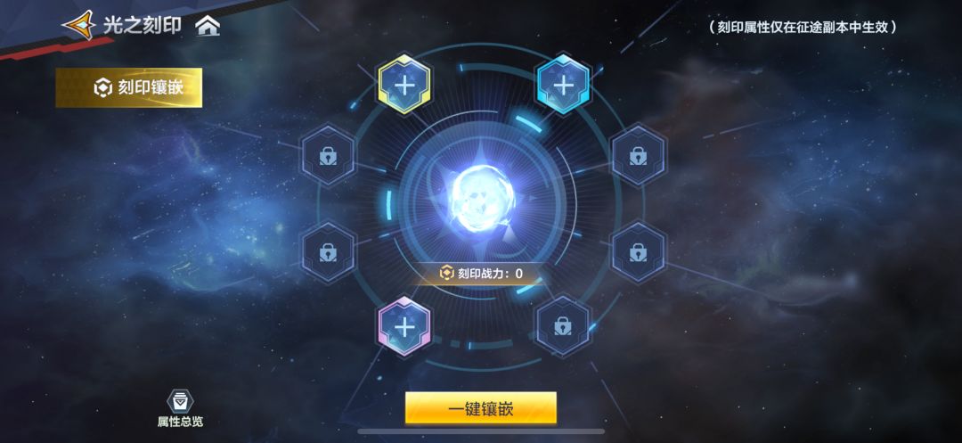 • “刻印”镶嵌后提升玩家在秘境玩法内的属性,属于秘境玩法的自成长系统!