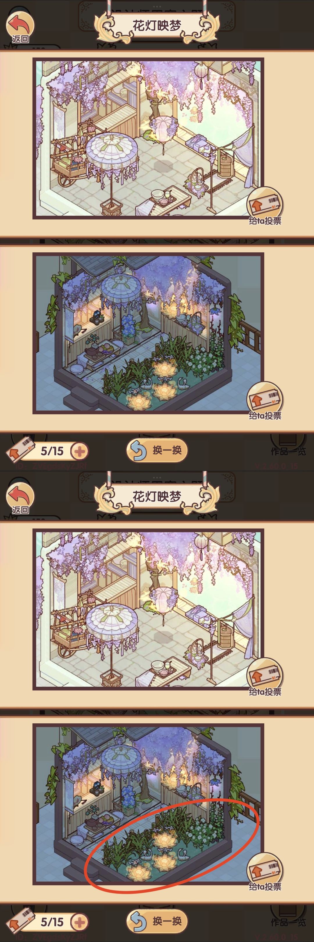 前两张是晒在榜首的作品,基本上用的就是紫藤花元素跟小院元素,下面的投稿也差不多是这些。